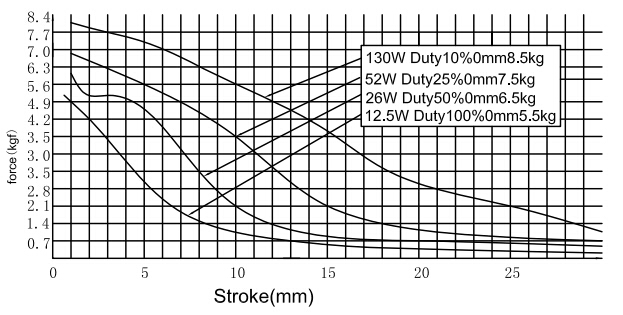 縱向:代表電磁鐵在對應(yīng)行程時的力量 單位為克(g)